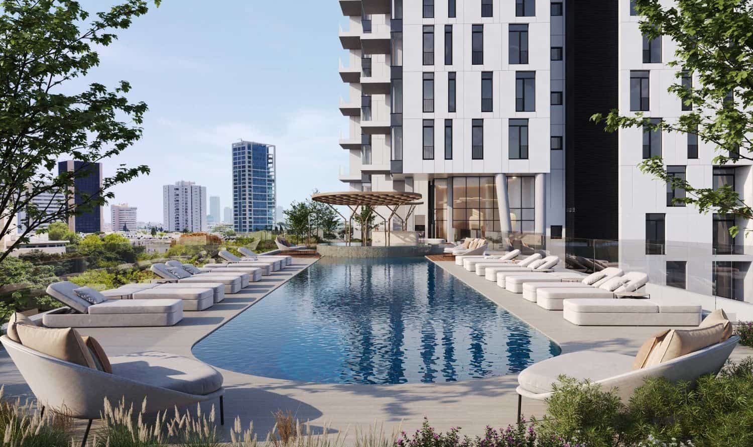 This residential complex features a 25-story luxury tower and a 6-story boutique building, centrally located near the courthouse, Ichilov Hospital, the city’s cultural centers, Savidor train station, and the Red and Purple Lines of the light rail. The project was designed by Moshe Tzur Architects, showcasing an urban aesthetic and a high-end, luxury construction standard.