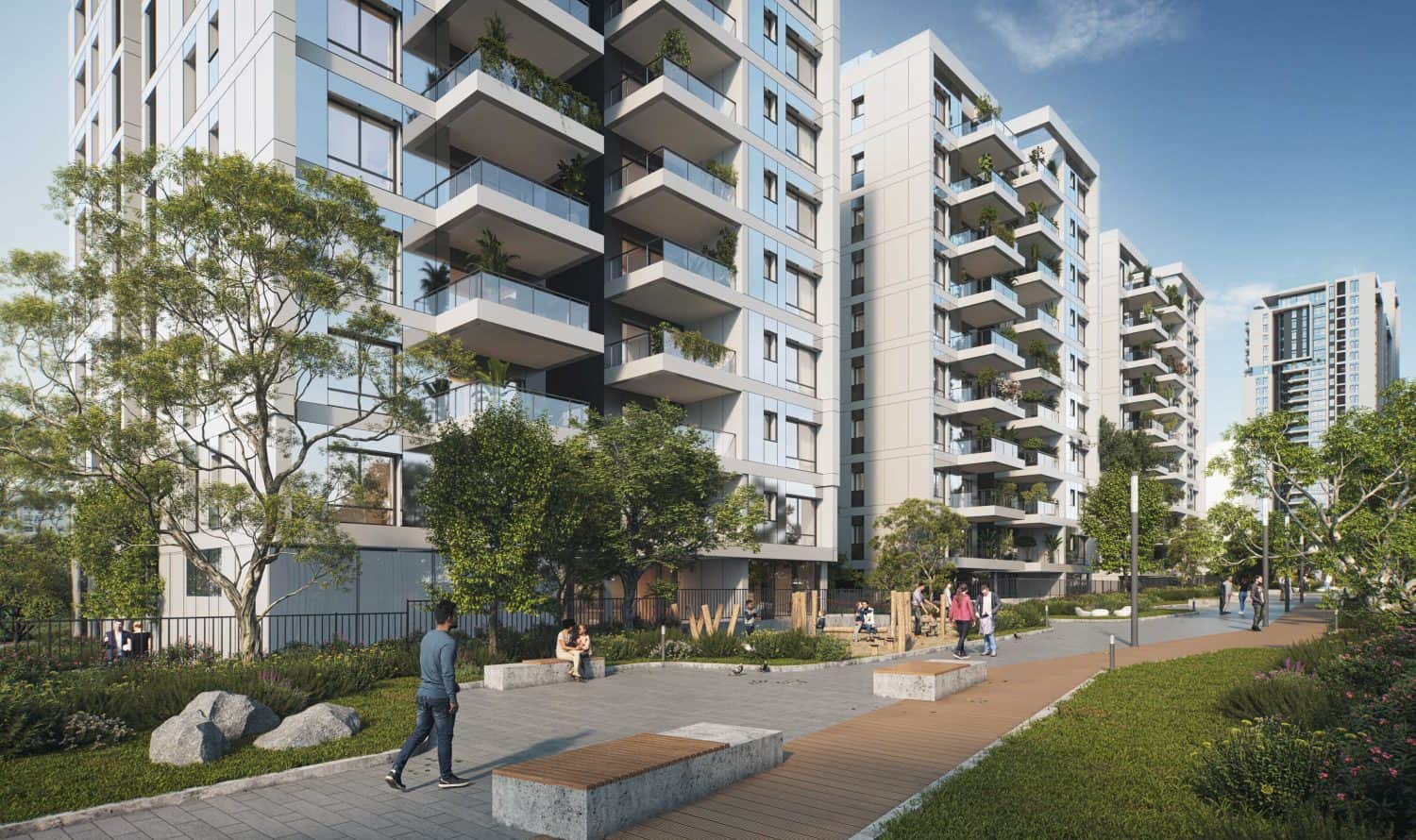 buildings in a perfect central-city location. Join The Strip community and enjoy a boulevard of shops and cafés right beneath your home, as well as kindergartens, schools, and business centers, all with a sense of new beginnings.